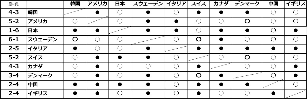 | 団体女子シングルス予選 | @jpn-Ausa-Bita-Ckor-Dgeo-Ecan-Ffra-Gchn-Hpol-Ibgr(坂本花織) | ||
